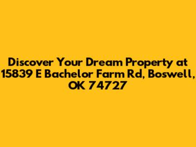 Hey everyone! Today, we're diving deep into a property that's truly special: 15839 E Bachelor Farm Rd, Boswell, OK 74727. If you've been dreaming of a slice of Oklahoma paradise, a place where you can escape the hustle and bustle and embrace a more serene lifestyle, then you've landed in the right spot. This isn't just an address; it's an invitation to a whole new way of living. We're going to break down everything that makes this property, located right here in Boswell, Oklahoma, so incredibly appealing. From its potential uses to the unique charm of the surrounding area, get ready to explore why this particular piece of real estate might just be the perfect fit for your next big move or investment. So, grab a coffee, get comfy, and let's uncover the magic that awaits at 15839 E Bachelor Farm Rd.