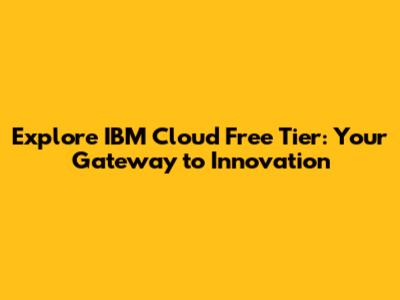 Explore IBM Cloud Free Tier: Your Gateway To Innovation