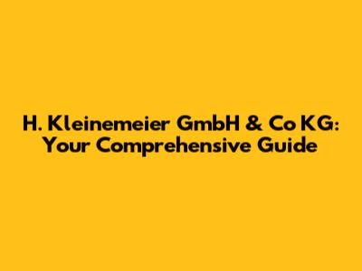 Hey guys, let's dive into the world of H. Kleinemeier GmbH & Co KG, a company that's been making waves. We're going to explore what makes this company tick, what they do, and why they're a name you might want to know. Get ready for a deep dive that'll cover everything from their business model to their impact on the industry. This is going to be a fun journey, so buckle up!