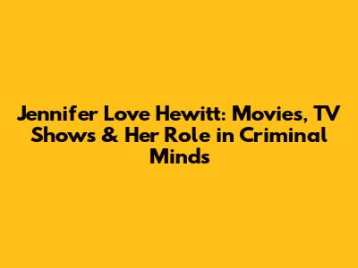 Hey guys! Let's dive into the amazing career of Jennifer Love Hewitt. From her early days as a teen idol to her more mature roles in television and film, she’s been a constant presence on our screens. We're especially going to focus on her time on Criminal Minds. So, grab your popcorn, and let’s get started!