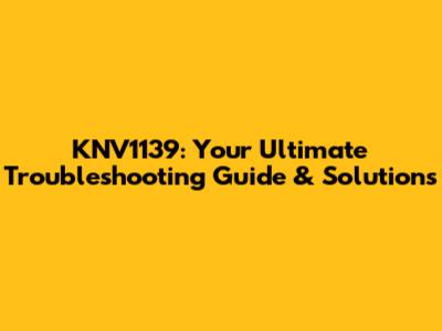 KNV1139: Troubleshooting Guide & Solutions