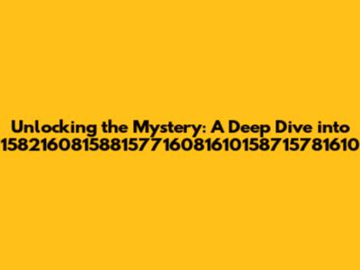 Unlocking The Mystery: A Deep Dive Into 158216081588157716081610158715781610