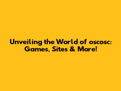 Unveiling The World Of Oscosc: Games, Sites & More!